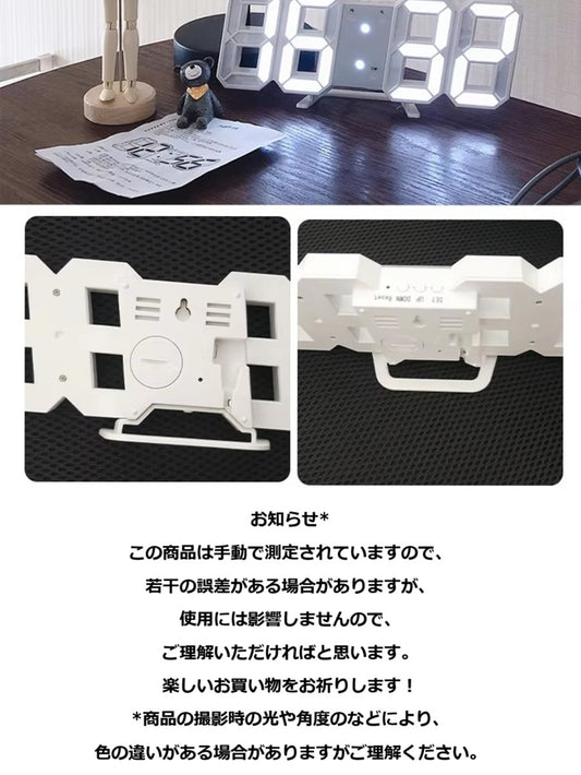3D LED ライト デジタル目覚まし時計 壁時計 時間 日付 温度 家庭用 ホーム インテリア 数字時計