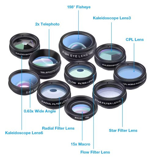 電話レンズセット 10 in 1 魚眼広角マクロレンズ CPL フィルター万華鏡 + 2X 望遠鏡レンズスマートフォン用