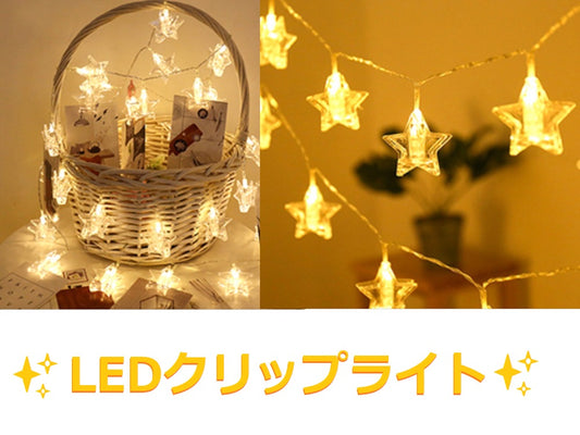 星型 スター LEDライト 飾り 電飾 3M20球 誕生日 パーティー クリップ