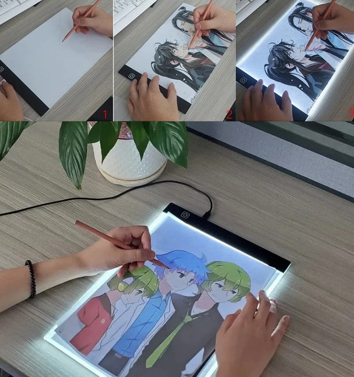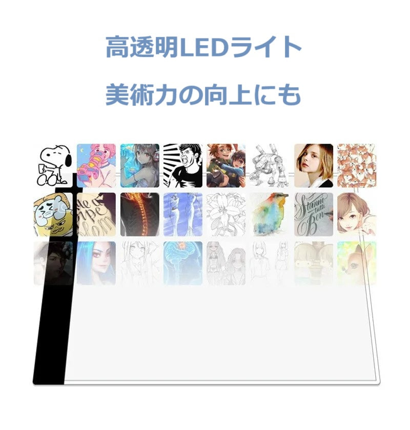 ライトをオンにして、原稿を下に置き、薄いペーパーをのせ簡単に描くことができます。