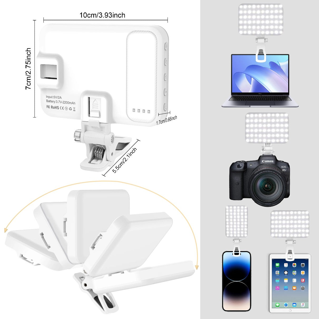 10レベルの明るさの調整可能な60個のLED照明ビーズが内蔵されており、電話、タブレット、ラップトップ、コンピュータ、三脚、カメラと互換性があります。屋内でも屋外でも、昼でも夜でも、TikTok、Facebook、YouTube、Twitter、Snapchat、FaceTime で動作します。